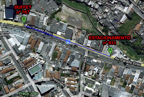 ![]() Estacionamento: o salão não possui estacionamento próprio, porém há um estacionamento a aproximadamente 200 metros do local, no mesmo lado da rua: